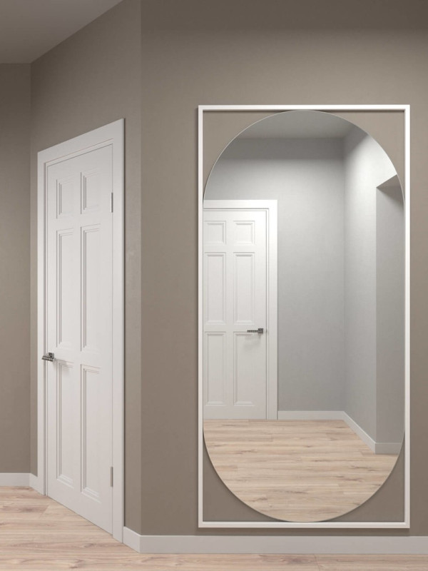 Дизайнерское настенное напольное зеркало Glass Memory Lustrous max в металлической раме белого цвета в Ачинске